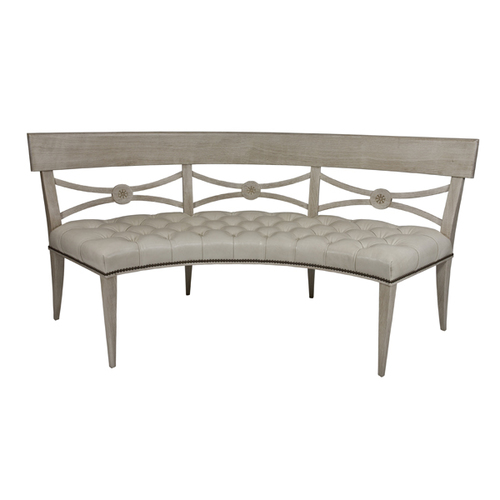 Hardwood frame with diamond tufted seat and nailhead detail, made to accommodate a 60" round table.