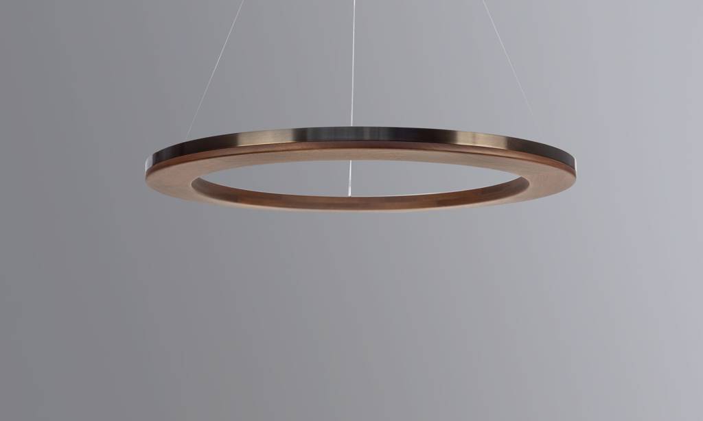 Made of walnut with a smooth metal inlay, our Numi is as contemporary as it is refined. Designed with integrated LED uplighting, this chandelier will provide gentle glowing illumination to any space. Available in two diameters.
