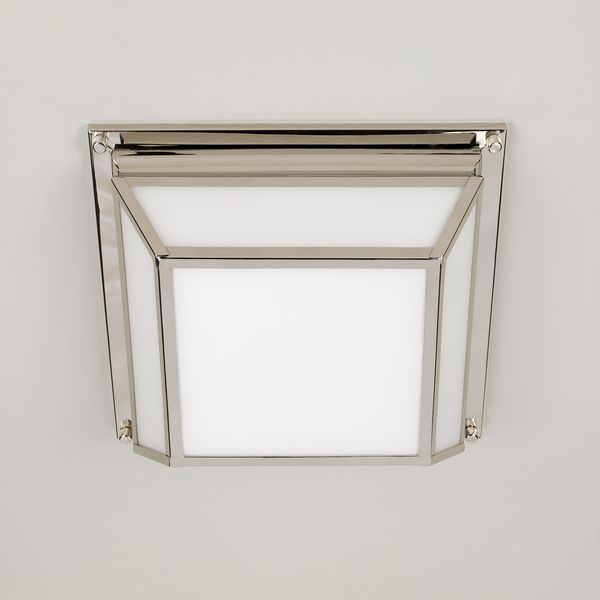 Inspired by streamlined Art Deco style, this light is defined by its bold architectural form. Its unique square frame requires complex engineering.Nickel