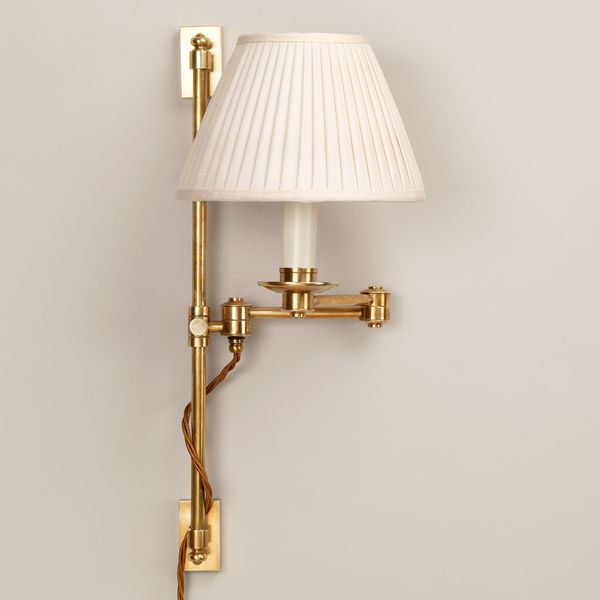 With an understated style, this wall light is highly versatile. The swing arm moves up and down on a central rod and the joints are finely engineered.Brass