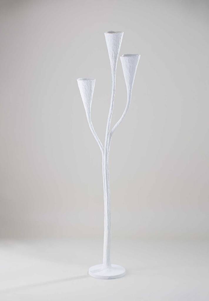Each Ophelia floor lamp is individually hand sculpted. Its twisting flutes emit a golden light, which is diffused and softened by its sculptural surface.