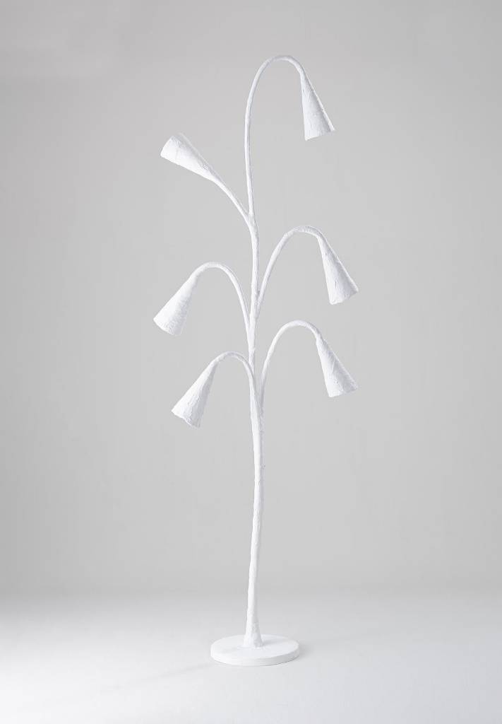 Each Ophelia floor lamp is individually hand sculpted by our artists in the paint workshop. Featuring beautifully twisting flutes that emit a golden light which is softened by its sculptural surface.