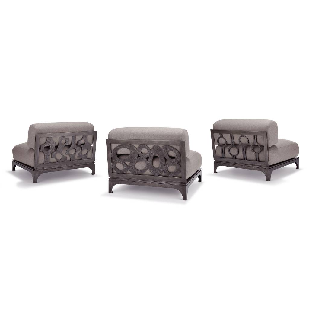 Nimmo was looking for handmade outdoor furniture when he designed the Opio line — and his signature, hand-hammered iron is the perfect detail on this graciously scaled chair. These pieces feature a great amount of beautiful workmanship.