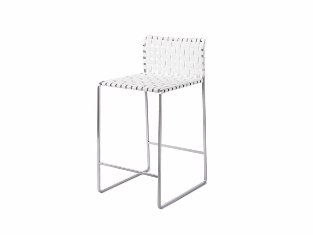 A lighter, outdoor version of the Low Woven Back Stool in stainless steel or powder coated stainless steel with a UV resistant, waterproof, faux leather seat.
