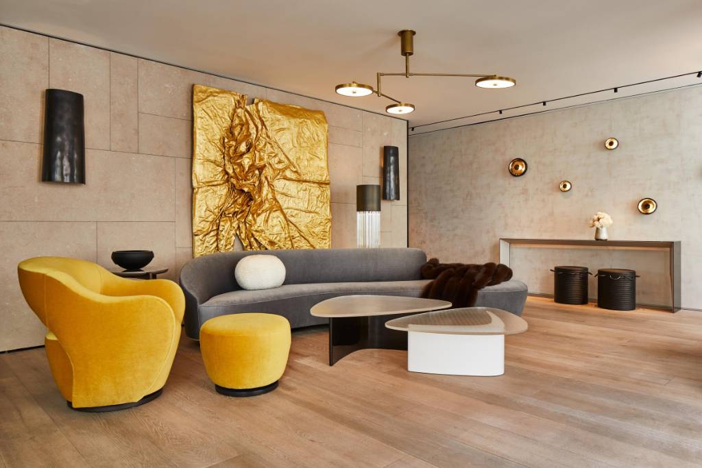 Stefan Gulassa’s Helios Chandelier was inspired by Alexander Calder’s mobiles, with tiers of cantilevered arms and illuminated discs configurable to suit the space and/or mood. Each custom-engineered hinge can be rotated 360 degrees, and each disc simultaneously casts light in two directions, projecting a constellation on the ceiling thanks to perforations only visible from above.
