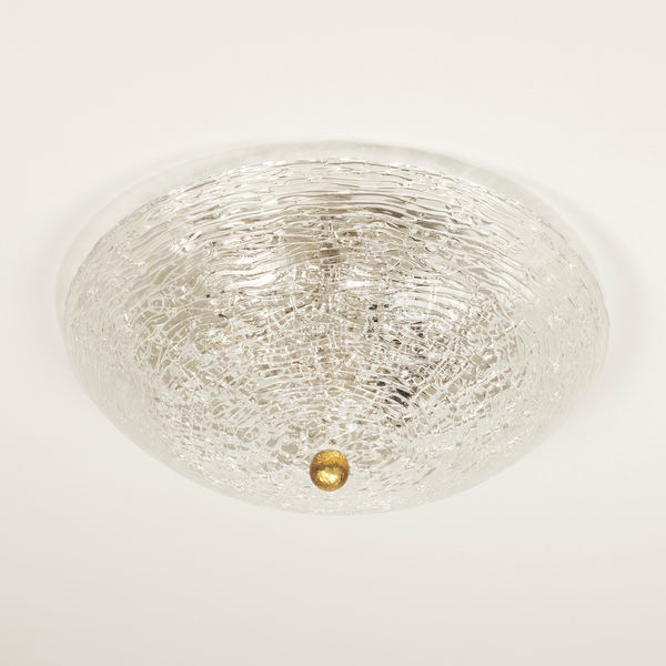 This design is defined by its hand-formed and textured glass shade which creates a diffusion of light.Brass