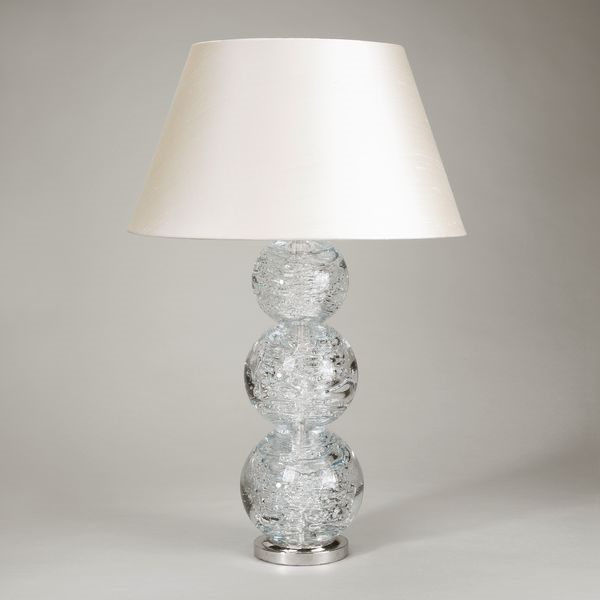Crafted from Bohemian crystal glass and designed with a classic three-sphere shape, the swirled bubbles within each sphere are textural and reflect light beautifully. The lamp has an incredible weight yet retains a lightness of form.