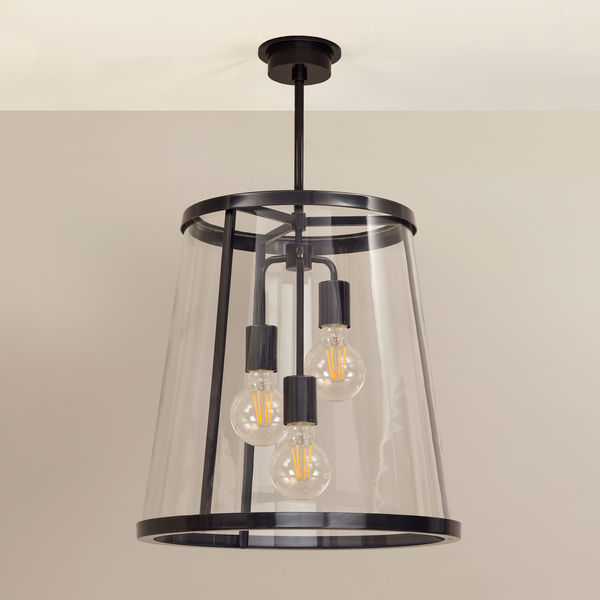 This lantern is defined by its simplicity of line and bold contemporary style. Adding to the Petworth collection, this larger version has three lights fixed at different heights.