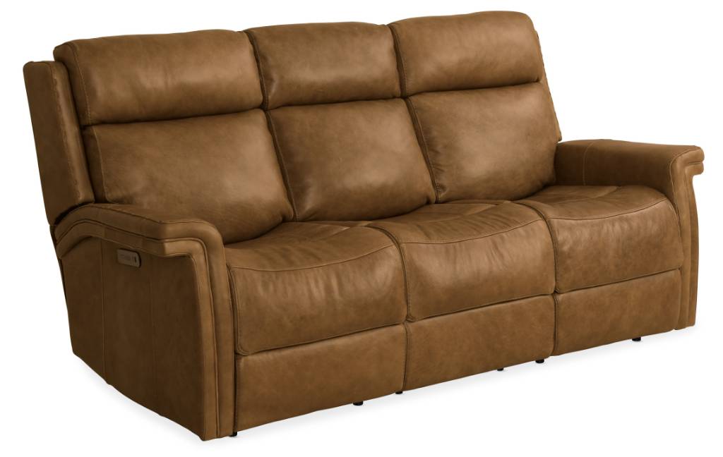 Product Description: Relaxed but refined, the Poise Power Reclining Sofa lives up to its name, combining features like hand-laced seams and keyhole-shaped arms with bucket seats that easily conform to your body for sink-in-me comfort. The neck-roll backs, along with the power headrests, provide comfort and support for your upper body, and the power recline feature on each end seat allows nearly unlimited positioning. The rich brown Venerando Latte waxed aniline leather has a heavyweight grain texture and natural variations for authenticity.