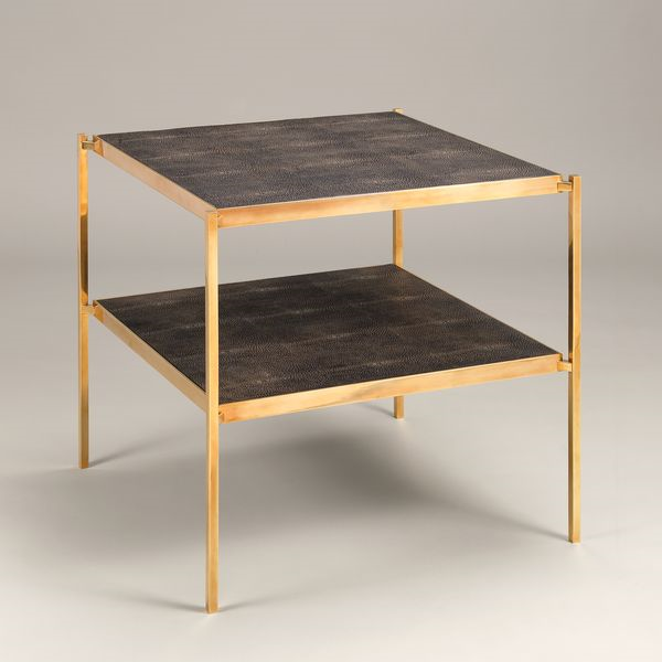 This table has a distinctive and streamlined design with eclectic offset legs. While produced from traditional materials, the piece has a contemporary style.Nickel (Glass)