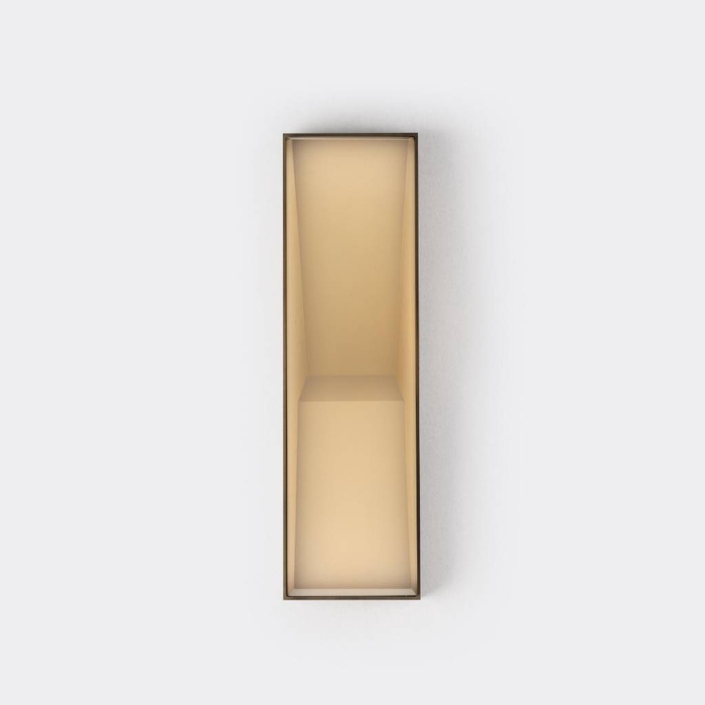 Modern with a jewel-like form, the Prism Sconce is composed of a faceted cast glass diffuser set within a brass frame and backlit by LEDs. The angular dimensional design showcases a seamless blend of frosted and polished surfaces as well as a balanced diffusion of light. It is offered in three colored glass options.