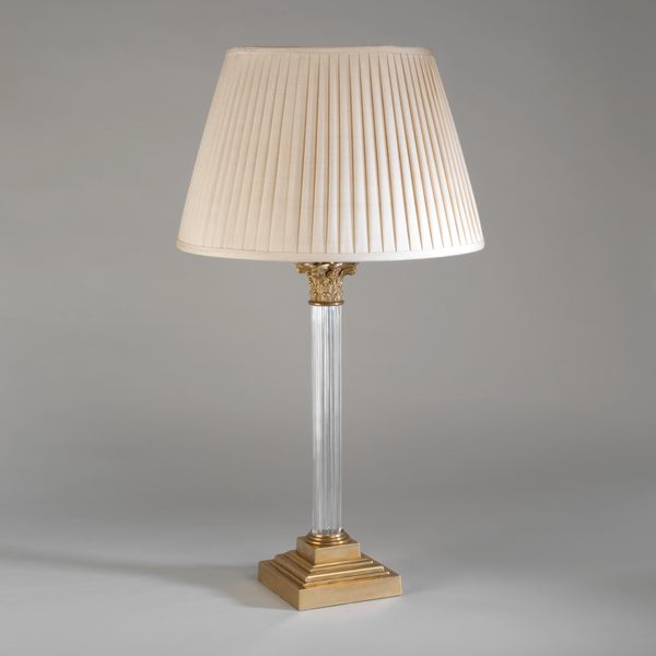 A 19th century English antique oil lamp inspired this design. The fluted glass central stem unifies with the decorative brass base and Corinthian-style capital.Glass (Brass)