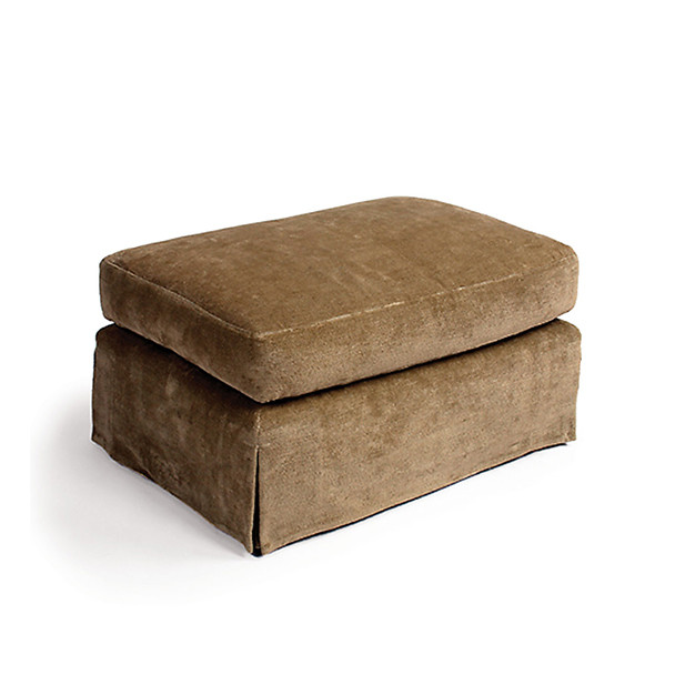 Description : Matching upholstered ottoman with semi-attached box cushion (25/75 down wrap) with French top stitch seam. Fabric Shown : JW 1815 Morgan Velvet - Fawn COM : 3.5 Yds COL : 63 Sq Ft