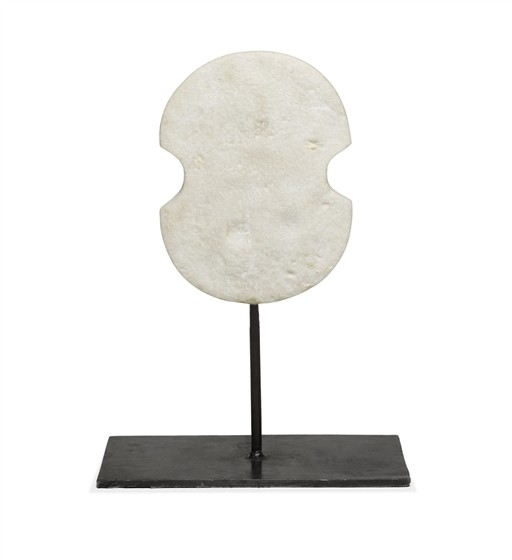 Description : Neolithic-style textured marble on a stand.