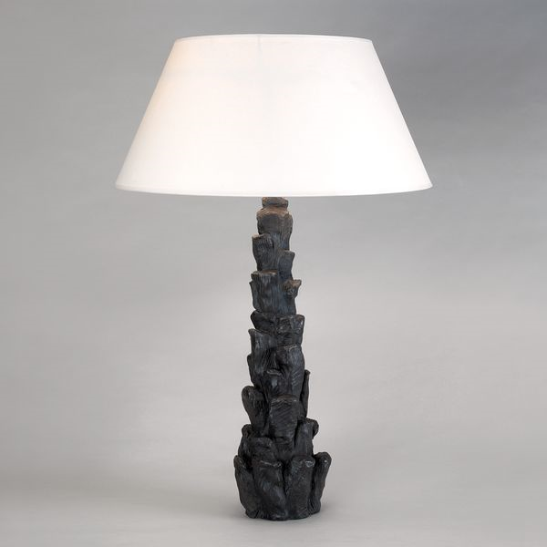An organic-shaped lamp, with a modernist style. Inspired by the texture of stones swept up on the seashore, the naturalistic form of the central body is achieved using lost wax casting technique.