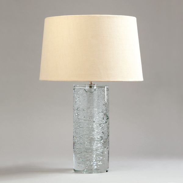 Inspired by the opaque texture of ice and crafted from free-formed Bohemian crystal glass, the enclosure of swirled bubbles brings an artful quality to the lamp's solid cylinder form.Glass (Nickel)