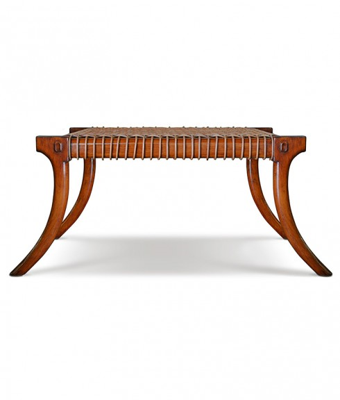 top dimensions: 24”d x 34”w x 18”h base dimensions: 24”d x 42”w seat height: 18”four legs12 lbsantique walnutwalnut with woven leather seatAlso availableF-OT02G - SABER LEG OTTOMAN with laced leather seatbleached & pickled w/22k goldwalnut with woven leather seat