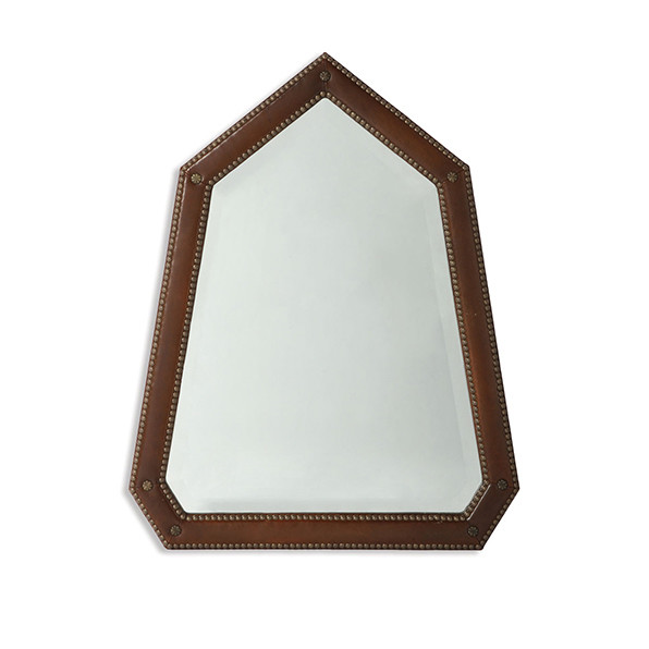 Leather-covered frame, hand waxed, distressed with standard nailhead trim