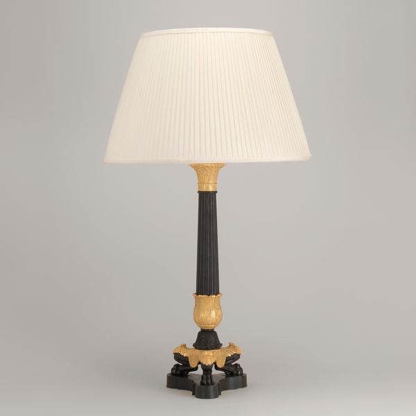 Inspired by a French antique sinumbra oil lamp, dated 1825. The original lamp had three lights, and we reinterpreted the design with a single light for a more refined feel. The tripod base works beautifully with the monopodia-style feet.