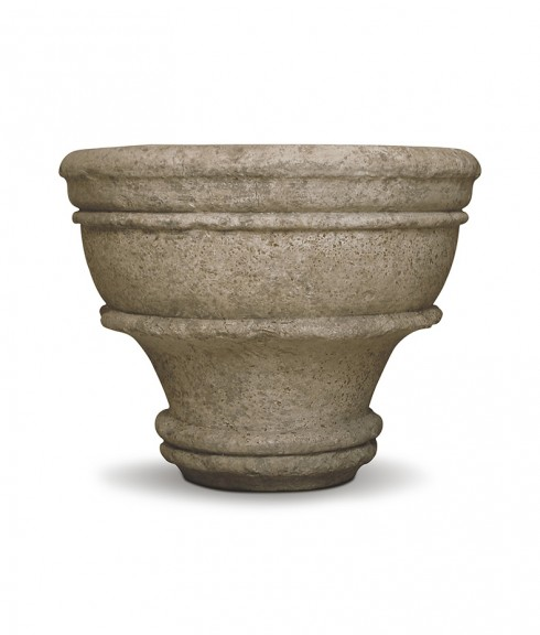 overall dimensions: 24½”dia x 19”h interior at top: 17½”dia x 17½”h interior at bottom: 6½”dia x 17½”hindoor/outdoorstandard size only170 lbspatinated stonecast stone