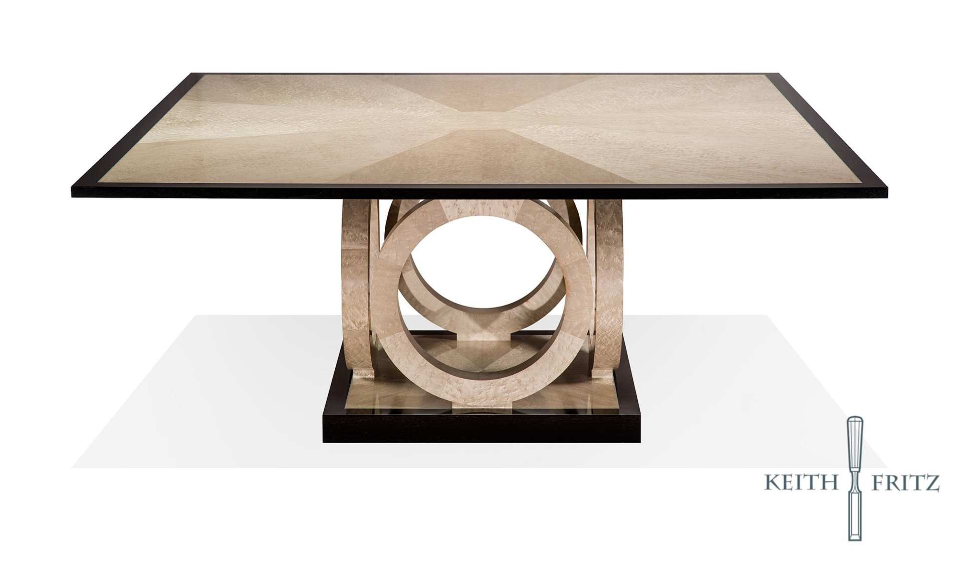 Available in all sizes and finishes. Shown here in cashmere gray birdseye maple with a black lacquer border and silvered accents