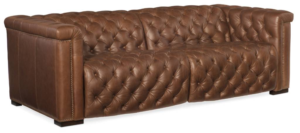 Product Description: Inspire awe with your family and friends, who will never believe a sofa as stunning as the Savion has two power recliners, and that each of the 2 seats features an adjustable headrest. The individually operated headrests invite you to lean back and relax your upper body while watching TV, reading or conversing, and the seating units transform to recliners with a smooth power control button, offering exceptional comfort. Savion blends classic elegance with modern flair, combining traditional button-tufted tailoring with a sleek profile back. The warm brown Saddlebag Lodge leather cover is finished for stain protection and is hand wiped, offering authenticity and sophisticated appeal.