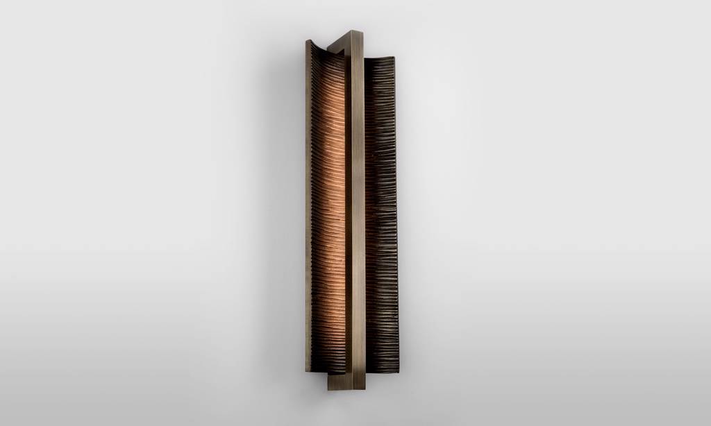 Custom-designed for Roger Thomas' final hotel project in Boston which wraps up a four-decade-long design career. The Exterior version of the oversized 24-inch-tall ADA sconce combines a precisely machined brass arm hides the LED light source and rough-hewn, hand-cast brass backplate handmade in Chicago. LEARN MORE: Watch an interview with the designer and read about his inspiration. Go!