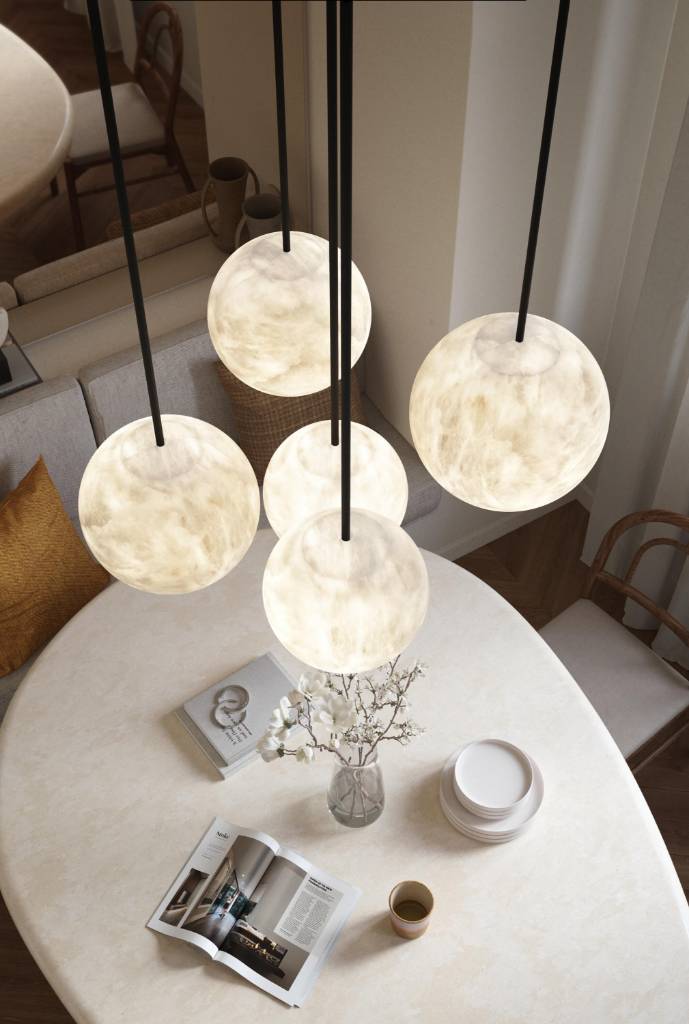 Evoking celestial bodies in the night sky, the Constellation Chandelier is an architectural statement for interiors. Consisting of cascading sculpted alabaster orbs in various sizes and adjustable heights, the chandelier casts a captivating glow like a bright cluster of stars. An exquisite, handcrafted design, it beautifully showcases the natural texture and luminous quality of alabaster.