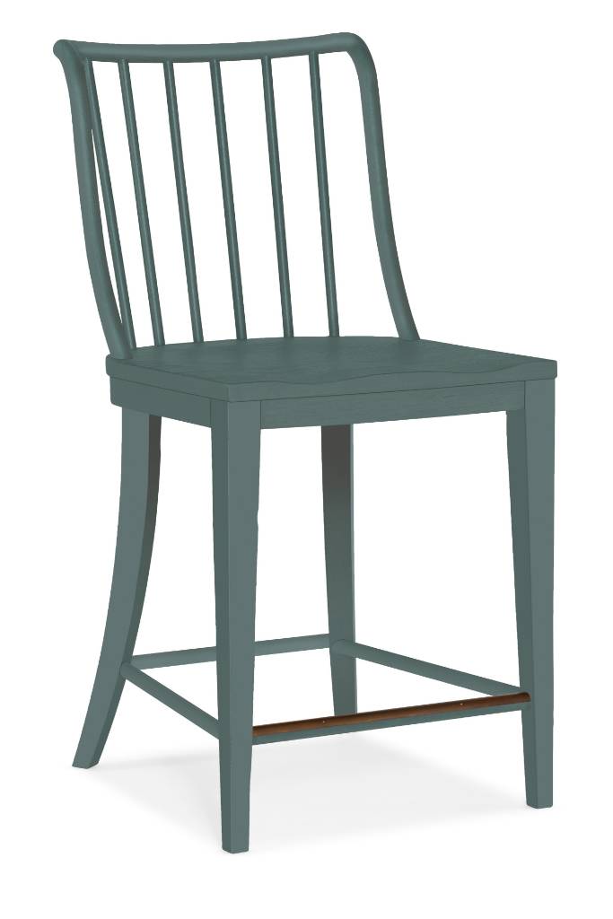 Product Description: Capture the palette of sky and sea and the organic textures of cottage waterfront living with the chic classic spindle-back Bermuda Counter Chair finished in the brush-textured blue Seaspray. Crafted of Beech wood with a metal footrest, the counter chair seat is 40 ¾ inches high.
