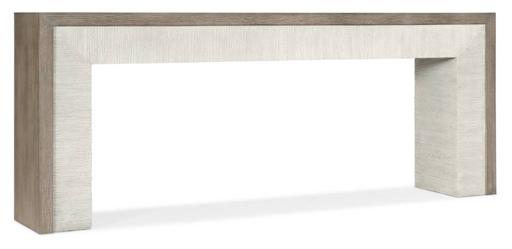 Product Description: In a crisp two-tone finish combining weathered gray with a textured washed gray color, the Serenity Skipper Console Table brings the organic textures of cottage waterfront living to your space. Crafted of Oak Veneers and Resin. Includes Levelers.