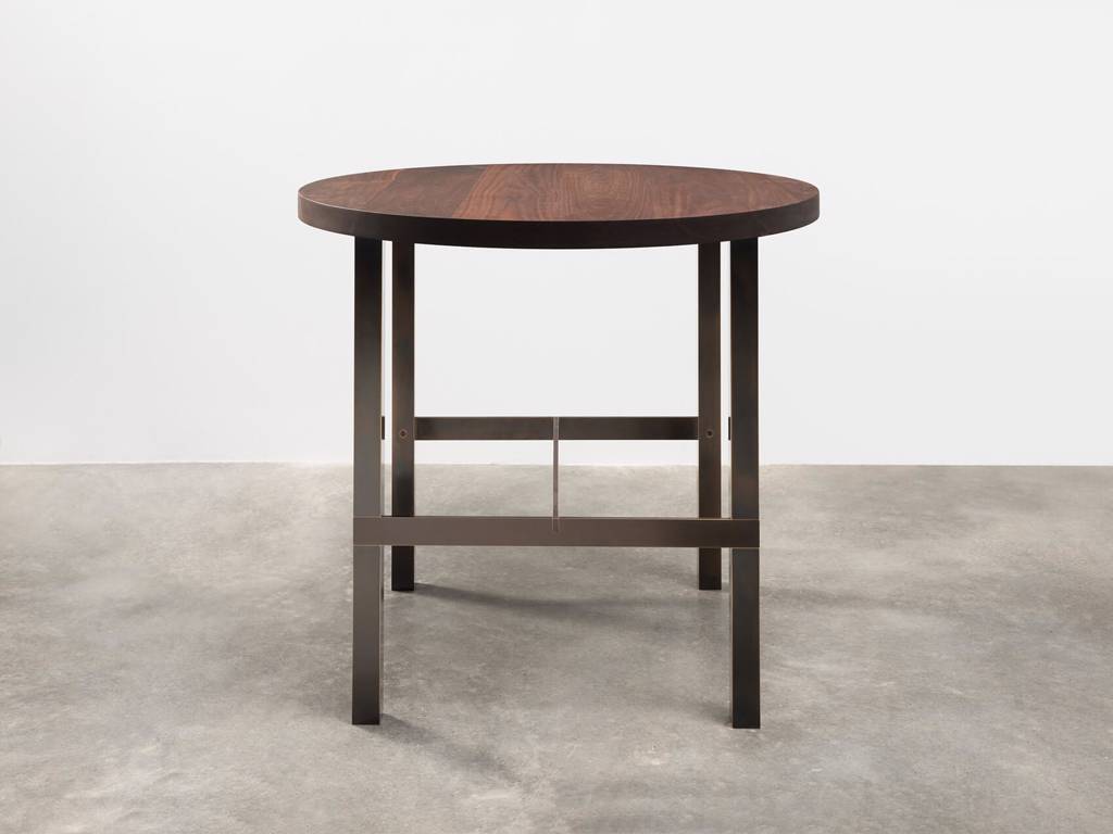Table with hardwood top and metal base