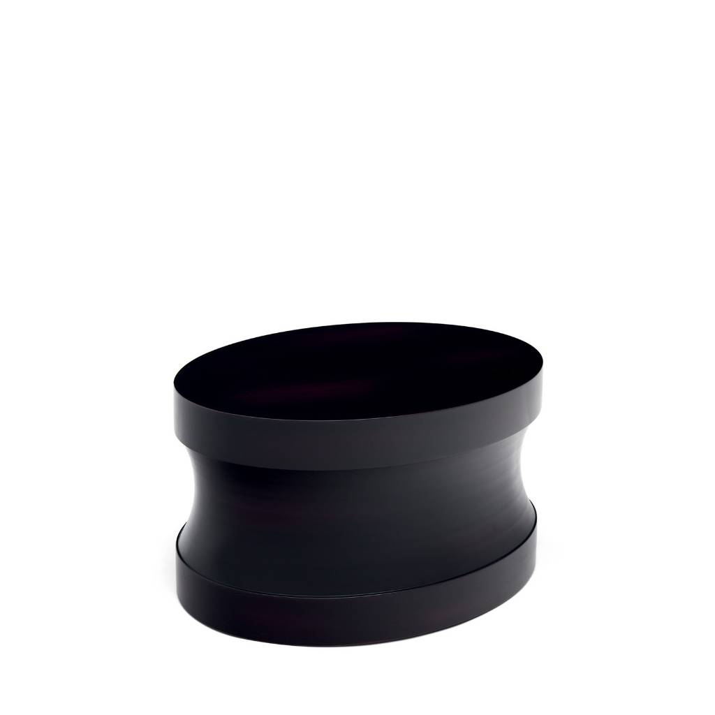 The flibuste pedestal table is available in solid cedar, black patinated bronze and entirely in shiny lacquer.