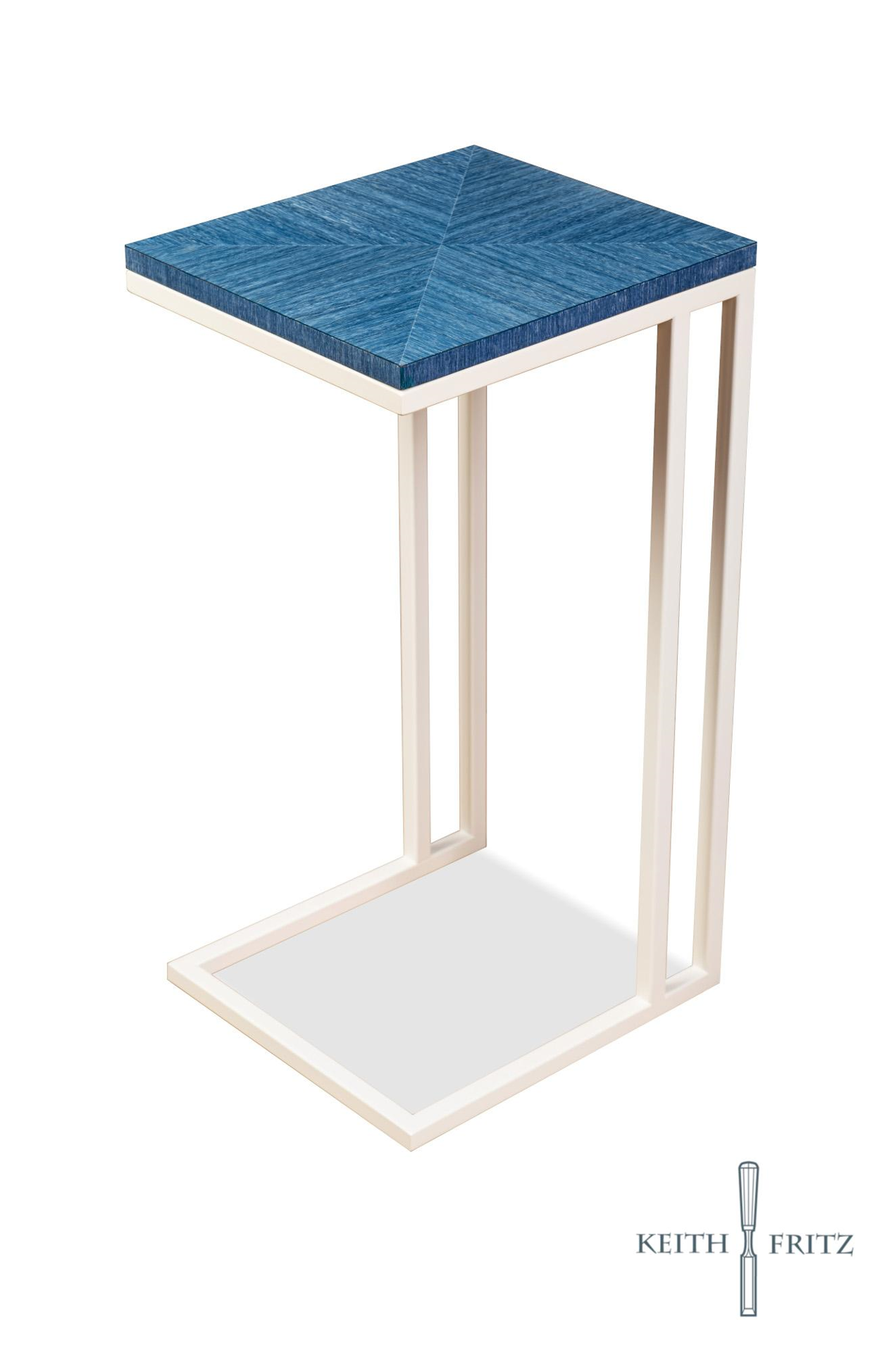 Our Sidecar table, named for the classic cocktail, brings together a classic C-shape drinks table with a wood top available in any Keith Fritz finish or grain pattern.
