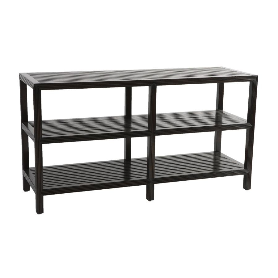 Description : Oak slatted three-tier buffet table. Hand-planed with light distressing. Also available in Antiqued Chinese Red and Georgian Green. Material : Oak