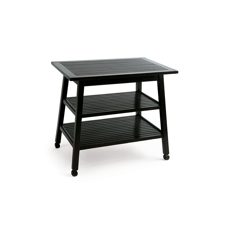 Description : Oak slatted three-tier table. Hand-planed with light distressing. Also available in Antiqued Chinese Red and Georgian Green. Material : Oak Finish : 24 Distressed Black/Brown