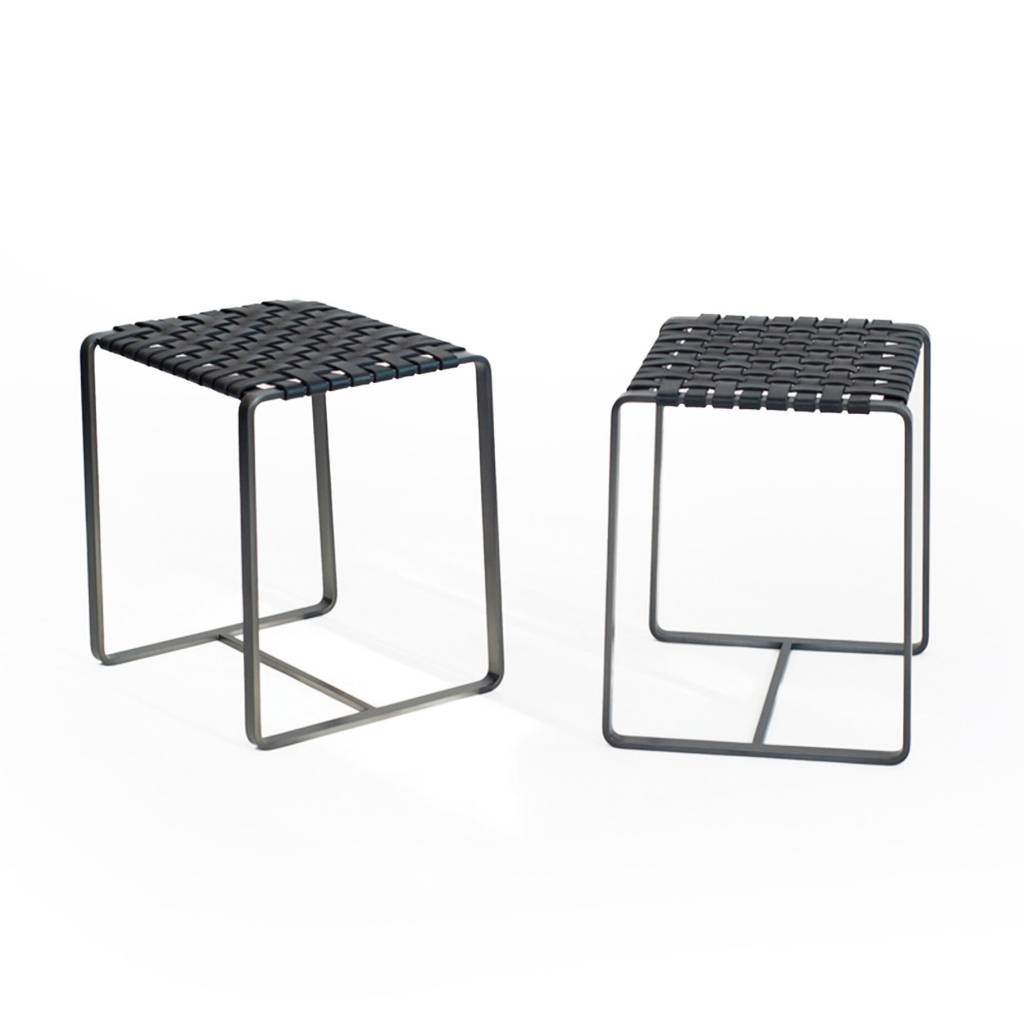 Small Stool, Black Steel, Black Leather, 15 in high
