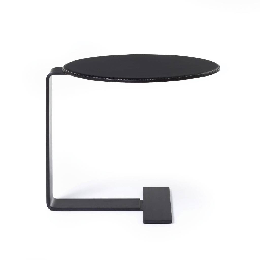 Solist Side Table, 17 in, Black Leather, Black Steel
