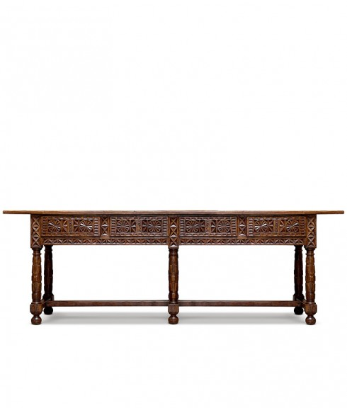 27”d x 108”w x 34”hfour drawers six legscustom sizes available225 lbspatinated walnutwalnut