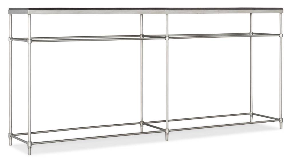 Product Description: Light and airy and modern and minimalistic, the St. Armand Console has a lightly-scaled metal base and legs finished in brushed pewter with a Solid Acacia Wood top in a casual black finish. At only 14 inches deep, this slim piece will enhance many types of spaces.