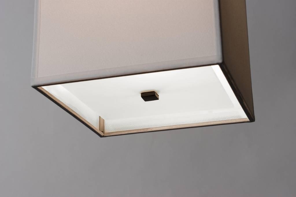 The Steeg Collection is the geometric cousin of Kevin Reilly’s Kolom designs, both modern interpretations of age-old architectural styles. Steeg features a streamlined version of a capital topping a square aquarelle paper shade. Light wafts softly south through an acrylic diffuser and upwards via four discrete architectural vents in the capital. In three standard sizes with customization options, for indoor and outdoor use.