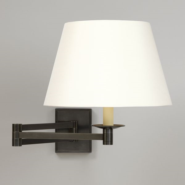 This large scale wall light has two adjustable arms to give maximum reach. The bronzed brass backplate has a distinctive stepped design and the adjustable arm has a clean, architectural line, complementing the rounded candle cup.