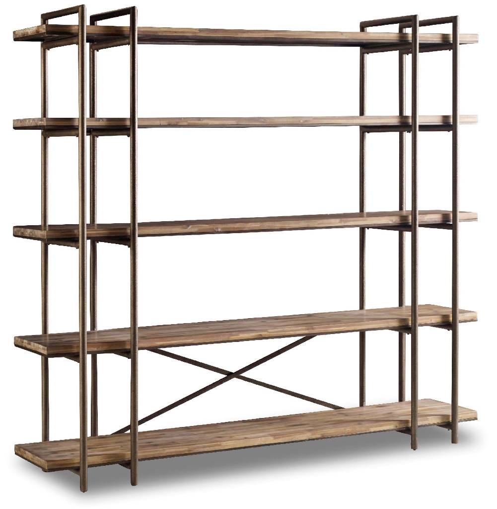 Product Description: Scandinavian shows its industrial side with a completely transparent entertainment/bookcase wall. Its structure is so apparent - planks of lightly distressed, weathered wood supported by metal scaffolding.
