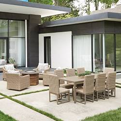 The Teak 48" Hexagonal Fire Table w/Faux Concrete Top is available in: