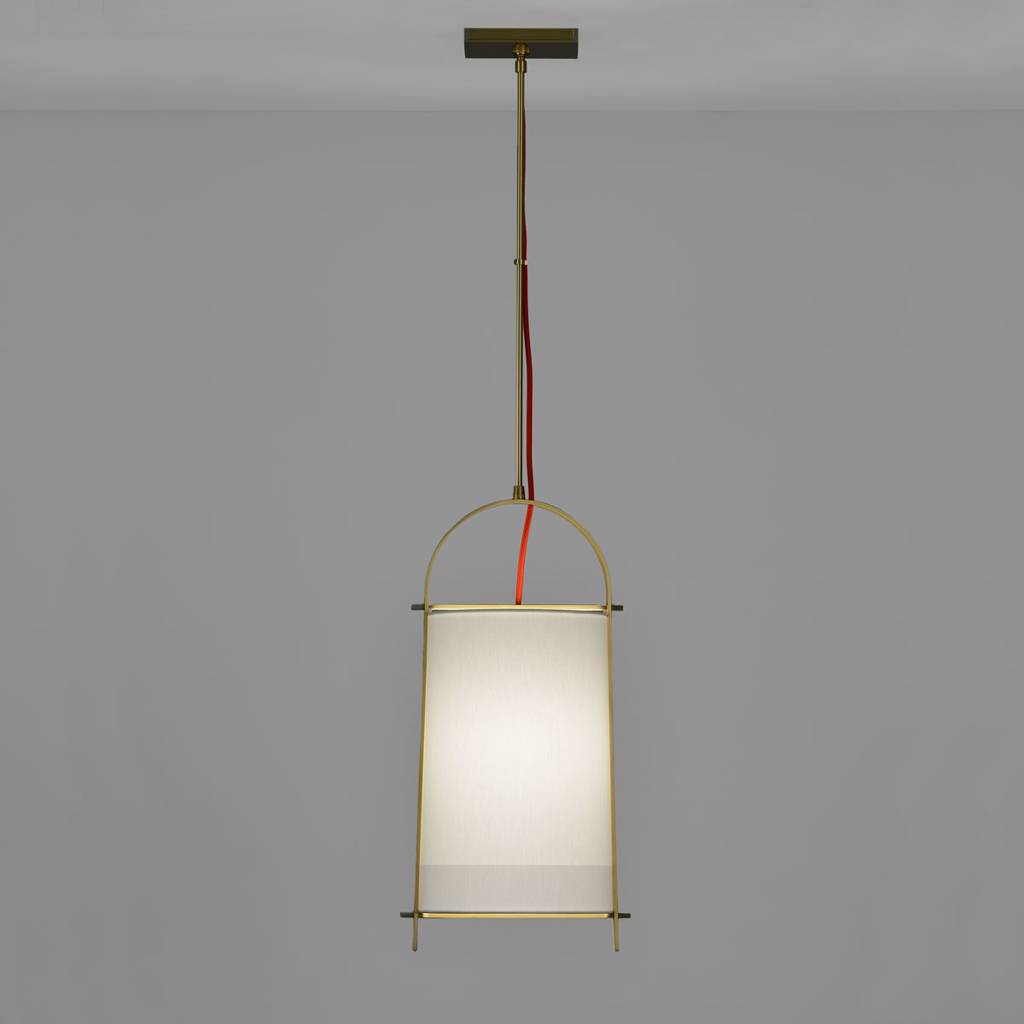 Recalling a Chinese water bucket, the To-Ji is a study in simple serenity with an elegant linen shade supported by a graceful arched yoke.