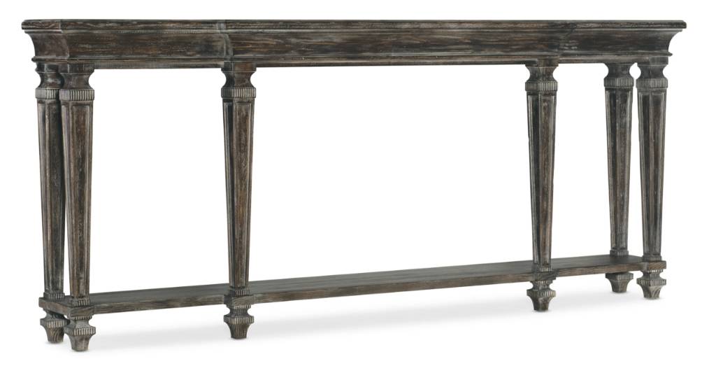 Product Description: Inspired by Italian antiques, the Traditions Console Table has a breakfront-style shape and a narrow 12-inch depth to make it versatile for many spaces. Crafted of Pine and Oak Veneers with Walnut Inlay and a Solid-Wood Edge Top, the console is finish in Maduro, a rich brown with grey undertones to create a sophisticated neutral palette.