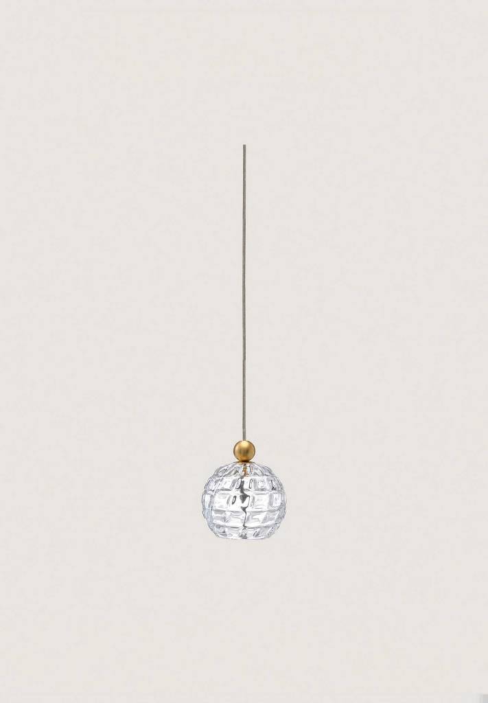The honeycomb texture of the Trinket Pendant is reminiscent of vintage glass design. The small scale piece is paired with a spherical cast brass collar that echoes the shape of the glass.