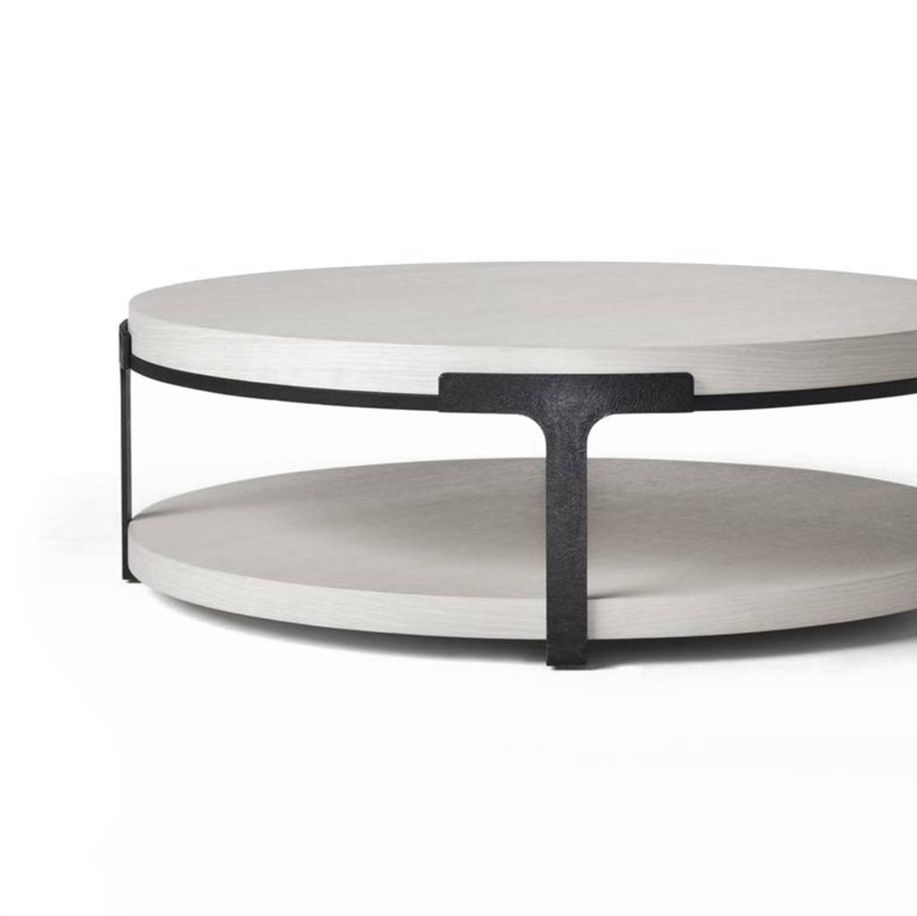 Tudor Cocktail Table Sz 1, Hand Forged Iron Base, Oak Alpine Top/Shelf