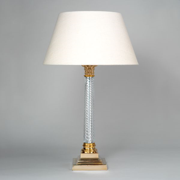 An early Vaughan design, the column pairs beautifully with the Corinthian-style cast brass capital and solid tiered base. The twisted glass has a delicate flowing form that radiates light.