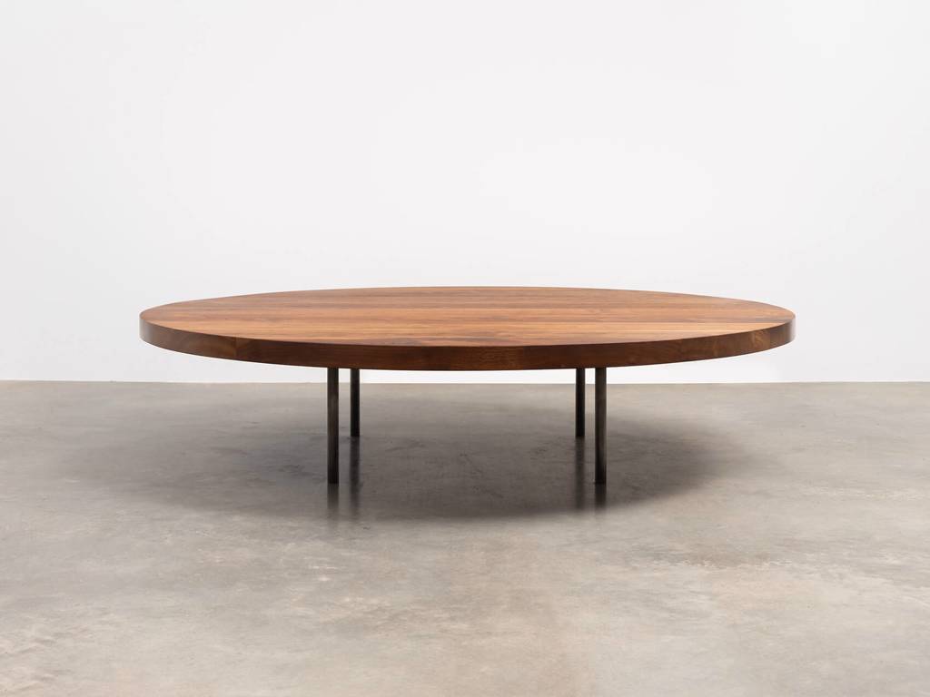 Round hardwood coffee table with 4 legs