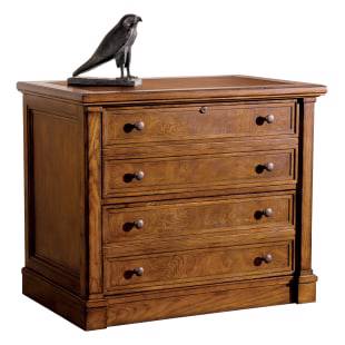 Select solids with ash and ash burl veneers.Top is comprised of leather with blind tooling.Top drawer locks only.Urban Ash Burl finish.Anti-tip feature.Two file drawers with metal slides.Accommodates letter or legal size files.Width 36" (91 cm)Depth 24" (61 cm)Height 30.25" (77 cm)
